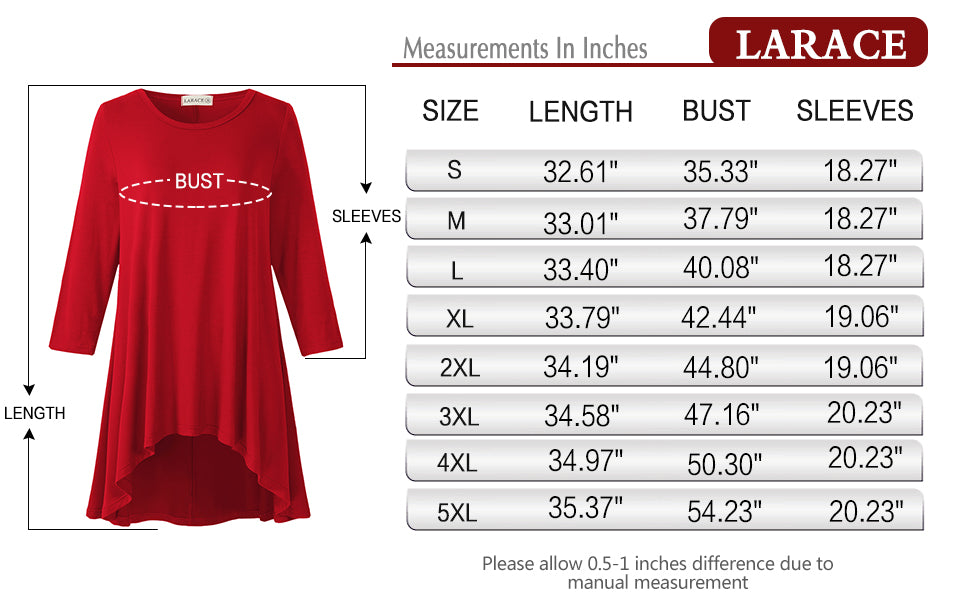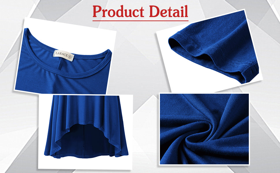 - Skin-friendly Fabric - LARACE high low plus tunic, 95% Rayon + 5% Spandex made, soft, lightweight and stretchy fabric offer gentle touching. No see through, no shrinking, no pilling and no fading