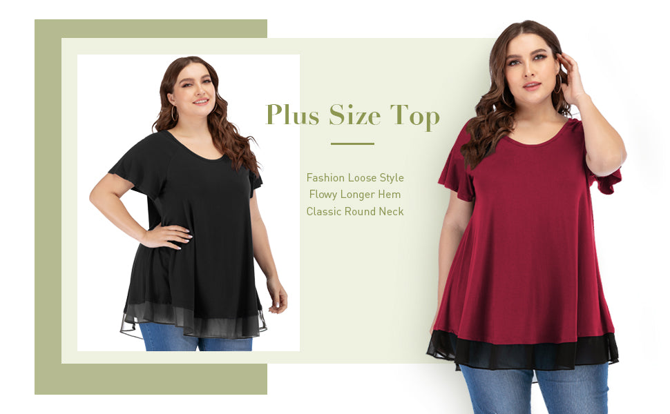 Plus Size Tops - Special plus tunic for fat women, bigger armhole, looser waist, longer hem perfect to hide the belly and bottom. Also suitable for pregnant women.