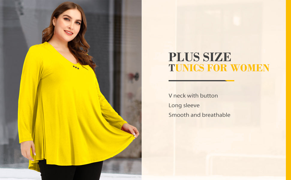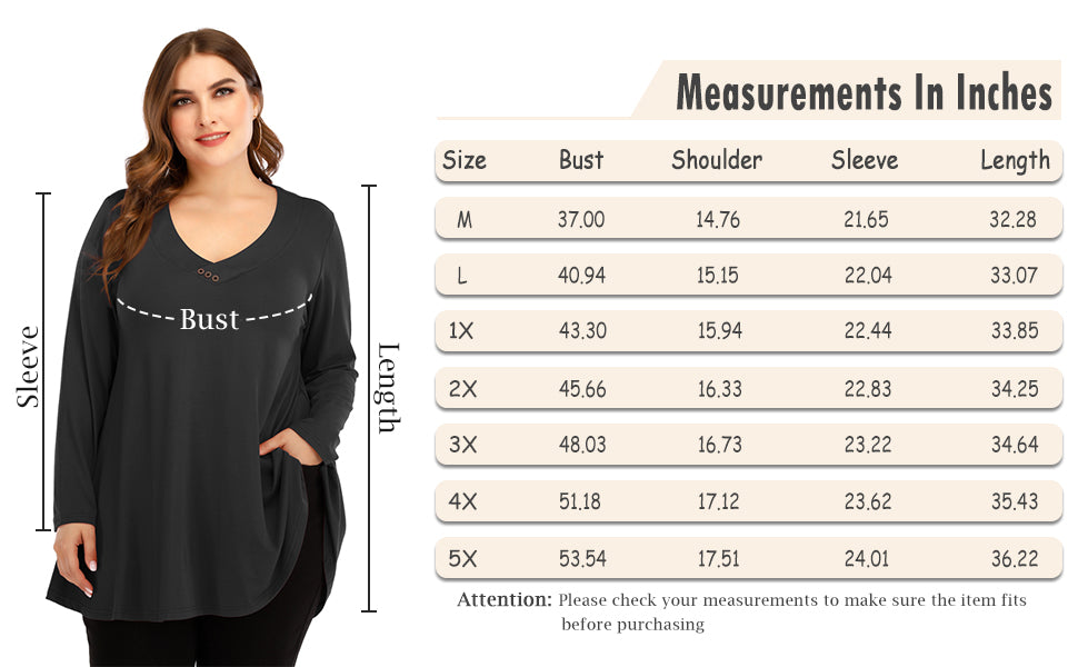 Women's Plus Size Tunic Long Sleeve V Neck Blouses Basic Shirt-LARACE 8055